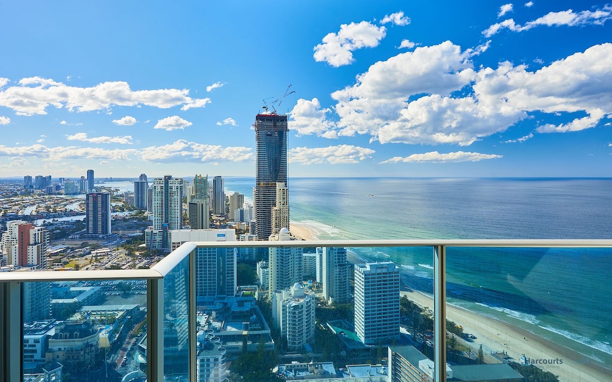 Direct ocean and city views from this brand new luxury 2-bedroom, 2-bathroom corner apartment. You will be high in the sky on level 50+. The unit is complete with FREE PARKING in the buildings gated underground car park. Absolute beachfront location at the newest building in central Surfers Paradise. The unit is equipped with everything you will need for your stay including fast 5G WiFi and more! Enjoy the heated indoor & outdoor pools, spa, sauna, gym, restaurants, and cafe!