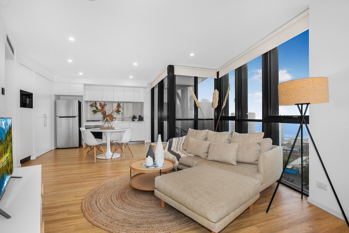 Experience Sky-High living at Signature Broadbeach Welcome to this luxurious 2-bedroom, 2 bathroom skyhome located on the 33d floor of the brand new Signature Broadbeach residential building. Nestled in the heart of Broadbeach, this stunning residence is just metres from golden sand beach and the sparkling ocean, offering the perfect blend of convenience and tranquillity. With soaring 3 meter-high ceilings, panoramic windows, and contemporary furniture package.