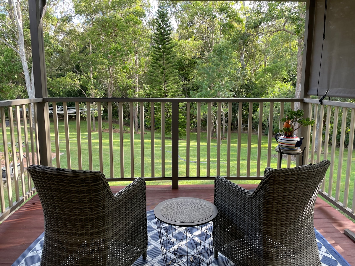 Spacious with a resort like pool, all you need to have a relaxing time. This self contained unit with seperate bedroom, bathroom, dining room, lounge room and fully equipped kitchen has its own front and back deck areas for you to sit and listen to the birds with your morning coffee. Free and fast Wifi included as are washing facilities. Located just outside historic Mudgeeraba Village in the Gold Coast Hinterland with surf beaches, rainforest walks and theme parks all a short drive away.