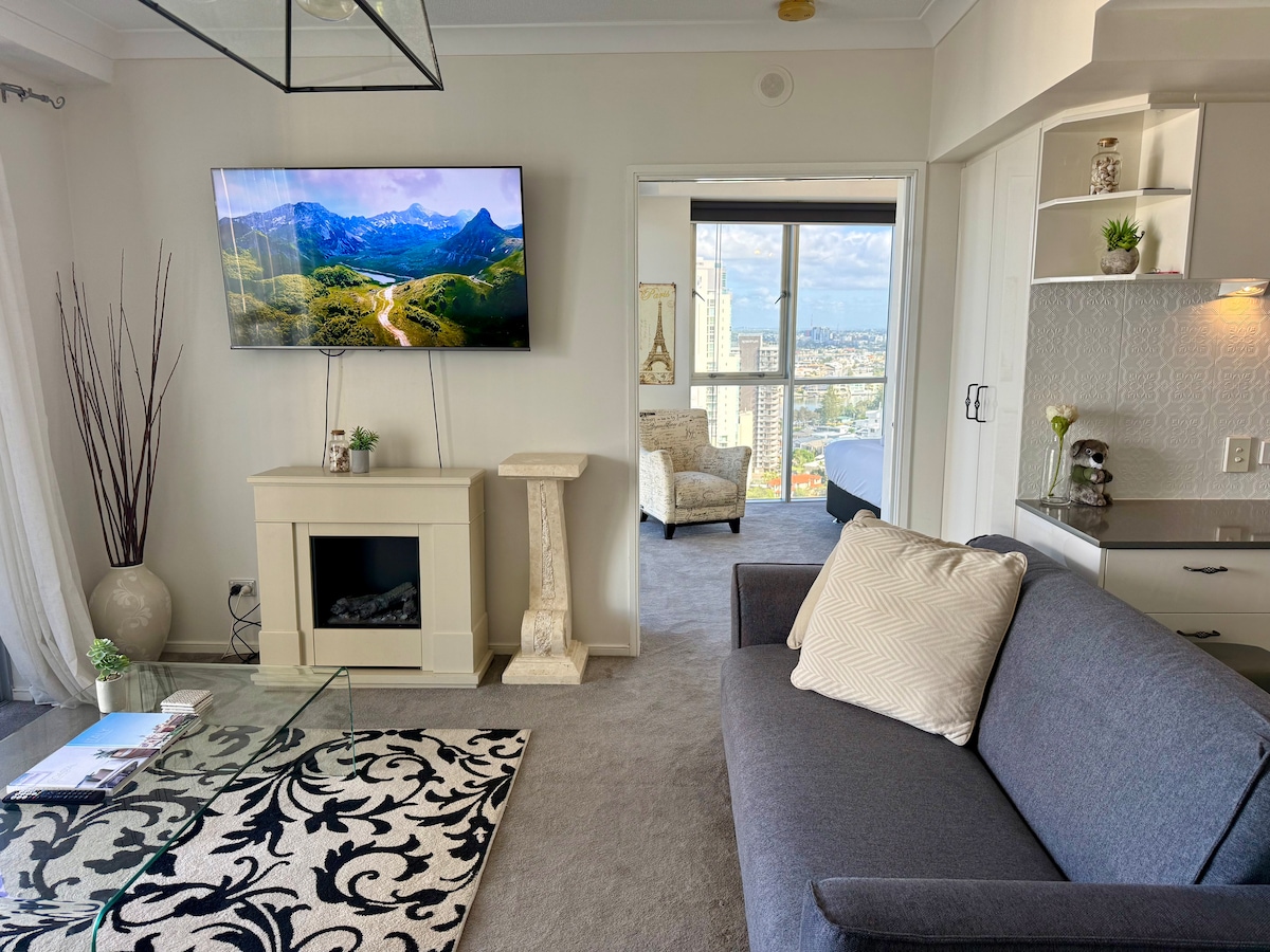 Welcome to your seaside sanctuary in the heart of Surfers Paradise! Perched on the 33rd floor, this stunning apartment boasts panoramic Gold Coast views. Just 2 minutes from the beach, dining, and entertainment, it’s the perfect romantic, family, or peaceful coastal escape.awaits!! • 250m to the beautiful Surfers Paradise beach • Right in the heart – cafés, restaurants & shops at your door • Resort-style pools – lagoon, lap, heated indoor + hot tub • Relax & recharge – sauna and gym included