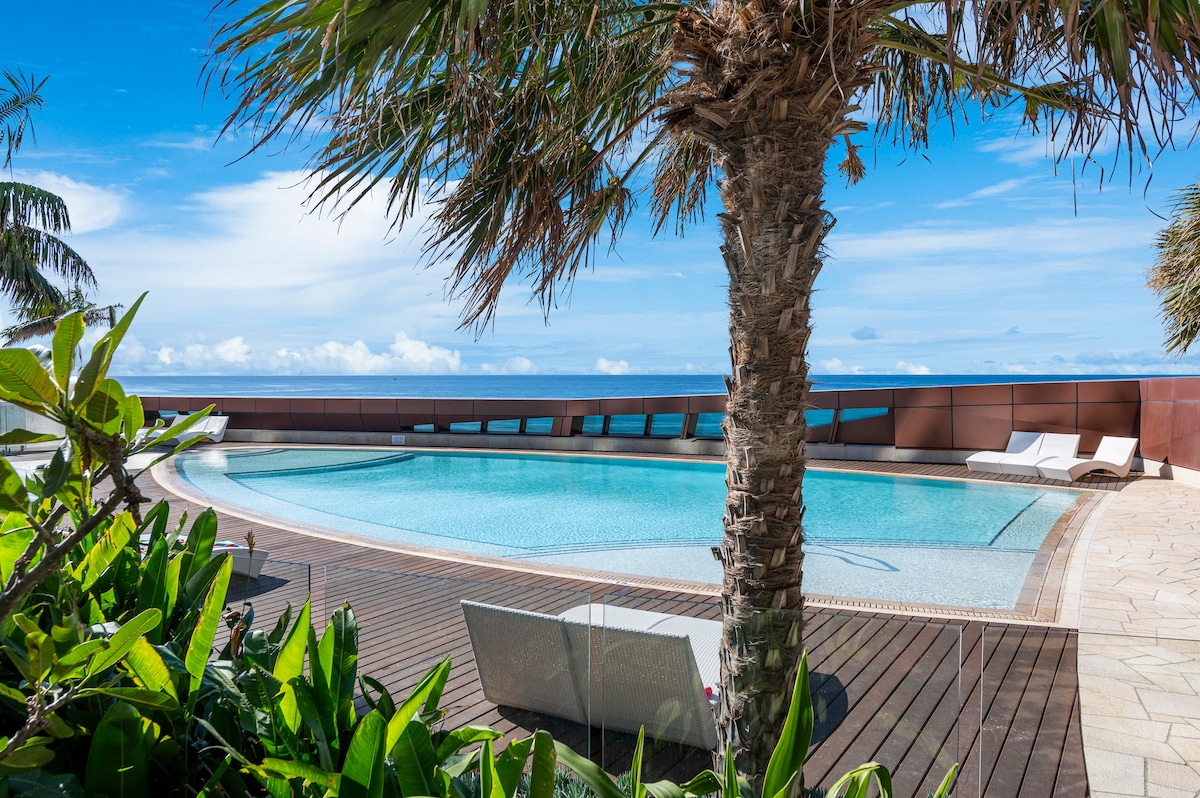 海景公寓,配备健身房、游泳池、桑拿房和蒸汽房