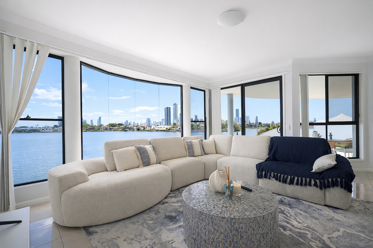 Wake up to shimmering waterfront views and end your day with golden sunsets over the canal, all while enjoying 26.7m of private water frontage. Step outside and you’re right on the water — launch a boat, enjoy a paddle, or simply relax by the waterfront lawn. Inside, the home has been thoughtfully styled with high-end designer furniture and coastal aesthetic. Located just minutes from Pacific Fair Shopping Centre and the famous Broadbeach coastline, you’re perfectly positioned for beach days.