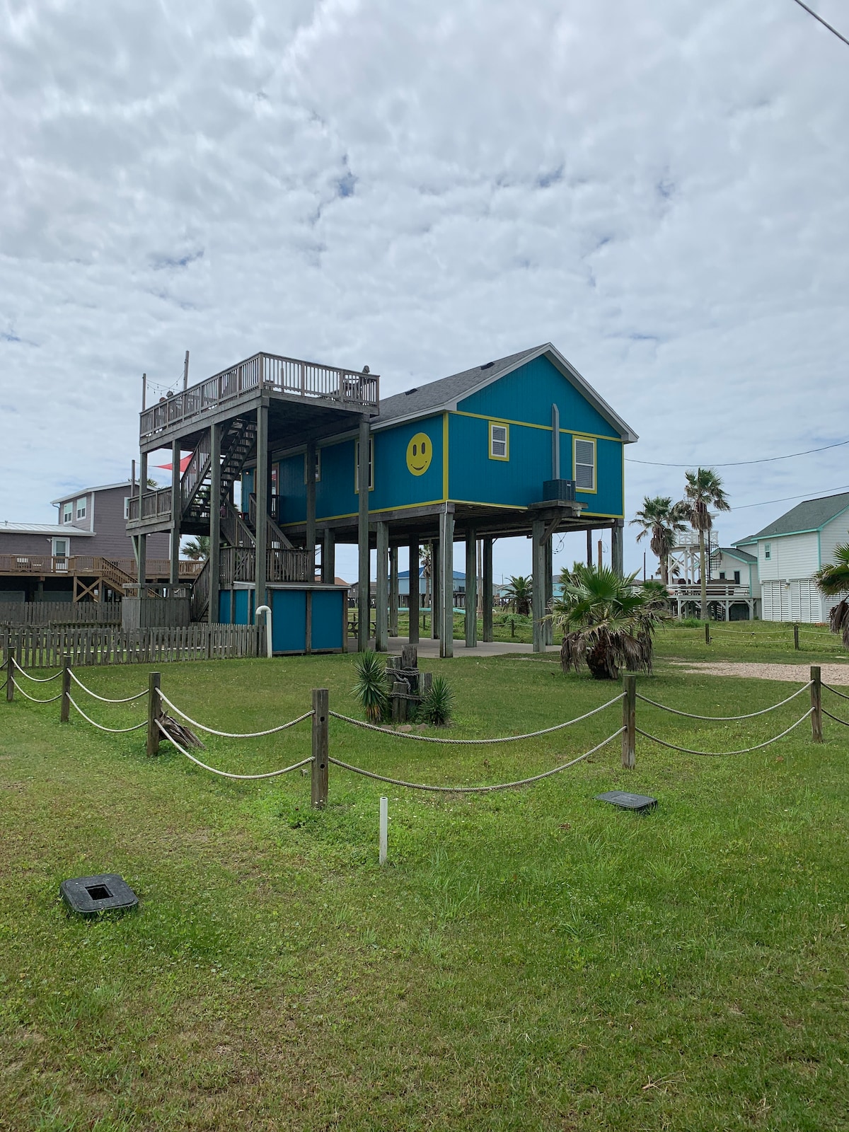 NEW Beachfront Construction! Truly a Unicorn:🦄 LOCATION, LUXURY, and So Nice to Have NEW! Located steps away from the best restaurants and beach in Surfside! Enjoy hammocks and games under the house. Climb the steps to an awesome shaded deck with views from San Luis Pass all the way to the Jetty! More than 180 degree unobstructed views. Bedrooms open to SunDeck and stargazing with fire 🔥 pit YouTube Beachfront Luxe for video $125 cleaning fee and only $75 total for up to 2 pets for whole stay!