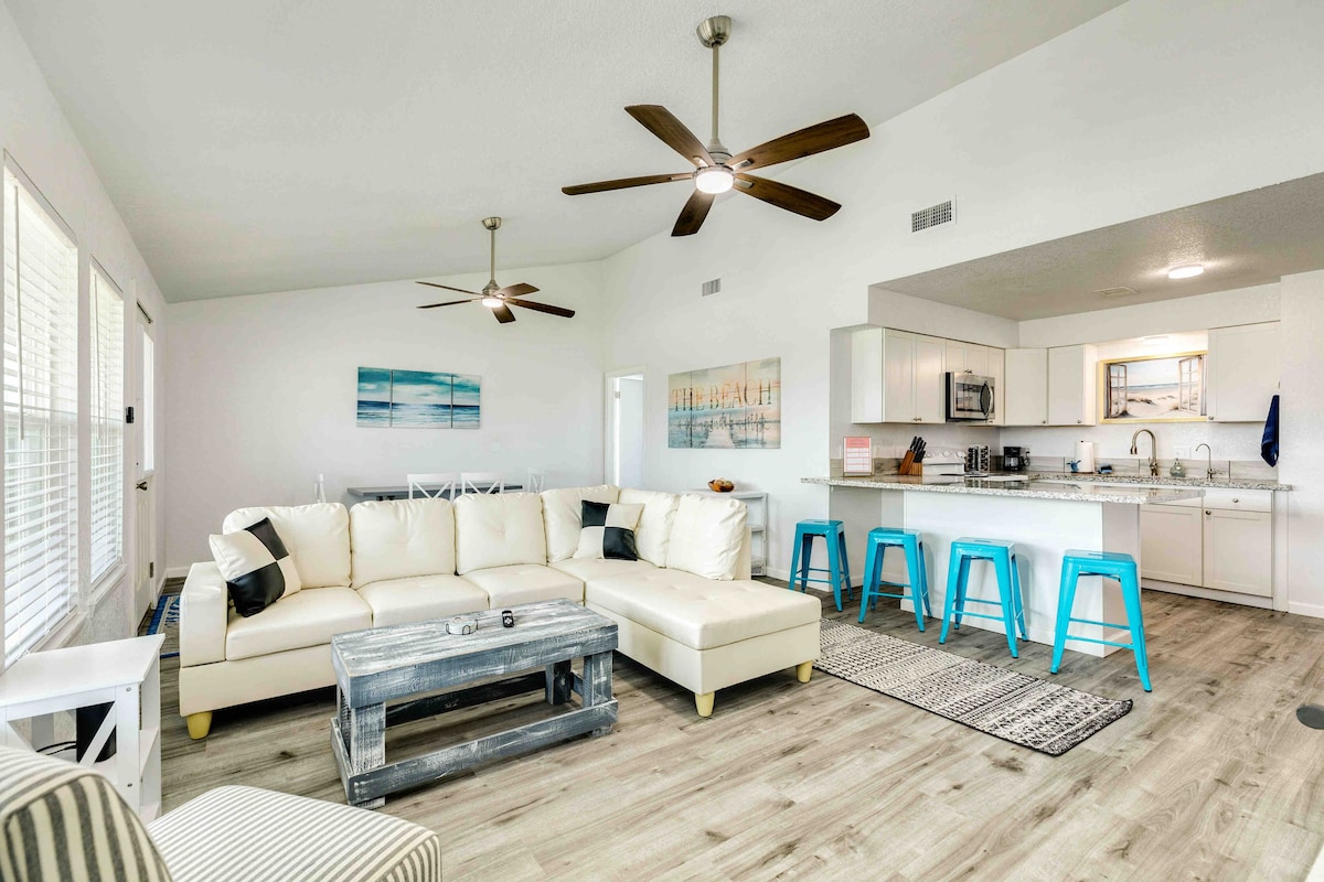 Enjoy the calming sound of waves crashing against the shore from this 1-bedroom, 1-bath vacation rental nestled in Surfside. This completely updated home is equipped with 5-star amenities, a bright modern kitchen, and a furnished deck for enjoying the ocean breeze. Your favorite beach-going activities are just a short walk away, while popular attractions like Moody Gardens and the Historic Pleasure Pier are just a quick drive up the island! At days end, dine with the locals at popular hotspots.