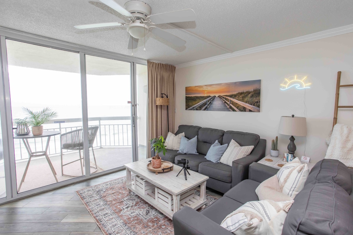 Magnificent, clean & newly updated 3 bed., 3 ba Oceanfront Condo as "Our Piece of Paradise" 2nd floor sitting on private balcony (which overlooks the Atlantic Ocean) with a cup of coffee in the morning and glass of wine in the evening, gated beach access This fabulous condo has a fireplace, professionally decorated with ALL the amenities , in unit washer/dryer, amazing family getaway w/ the best restaurants, great shopping, golfing, walk to the pier and entertainment, Make great memories!