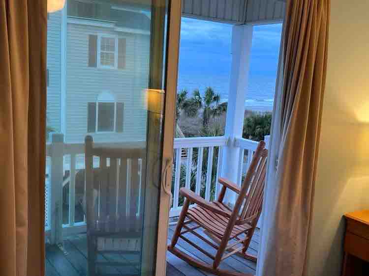 Totally Beaching - Unit #2 is one of 4 spacious condos located a block from the beach & 2 blocks from the fishing pier in the heart of historic Cherry Grove. Each unit is 900sf with 2 bedrooms, one bath, full kitchen and living room with front and rear porch access. The rear porch overlooks a natural pond teeming with wading birds and other wildlife. Guests are provided the essentials: bed linens, towels/bath clothes, cookware, and keurig coffee maker. Unit #2 is on the 2nd level right.