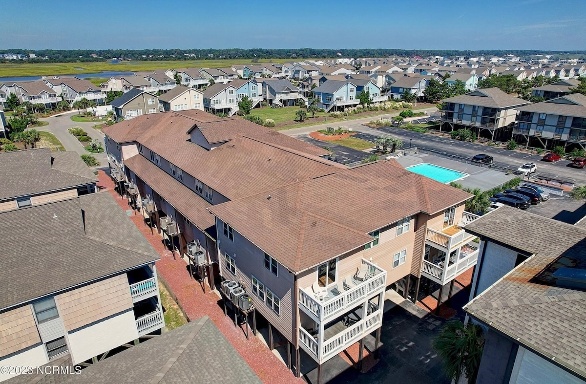 Come and enjoy this beautiful private beach TOWNHOUSE. First floor is the kitchen, living room, dining room half bath and balcony! Second floor 2 bedrooms just added roll away bed for extra sleeping with a full bath, washer & dryer and a balcony! Third floor is a master bedroom with a private bath and a wet bar, private balcony! 4 smart TV's for streaming . Private parking underneath & in parking lot. NO SMOKING. beach chairs, towels umbrella supplied. Message me for winter monthly discounts!