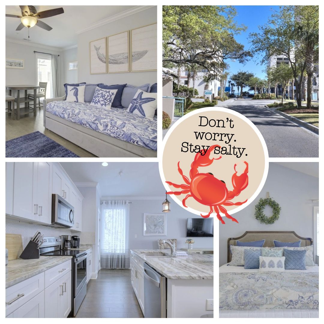 Walk to the beach! Only minutes from the beach. This adorable townhouse is just minutes from great restaurants, shopping, and the Skywheel. Completely remodeled with beautiful beach themes and large flat screen TV's. The kitchen is equipped for cooking at home and enjoying your meal in the gorgeous New Orleans style courtyard. Or, enjoy the wonderful seafood restaurants minutes away. Relax at the beach and then hit the nightlife and enjoy all the activities Myrtle Beach has to offer!