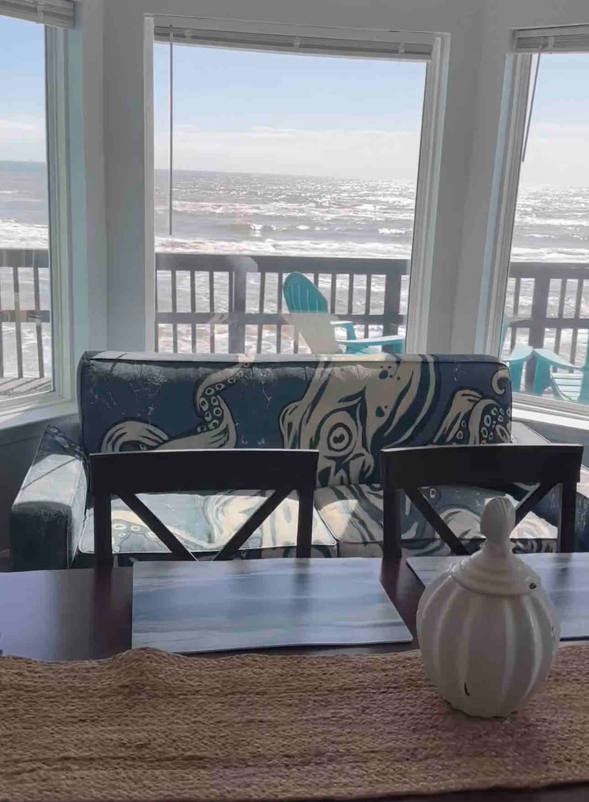 Relax with the whole family at our sturdy & newly renovated beach home, located steps away from the beach. Our large home is situated on an expansive corner lot & features beach and bay views. Enjoy listening to the ocean waves & stunning sunsets while you sip coffee or wine from our oversized deck. Enjoy s’mores from our outdoor fire pit. Our home is not a typical Galveston AirBNB as it is our family’s vacation home and very well maintained.