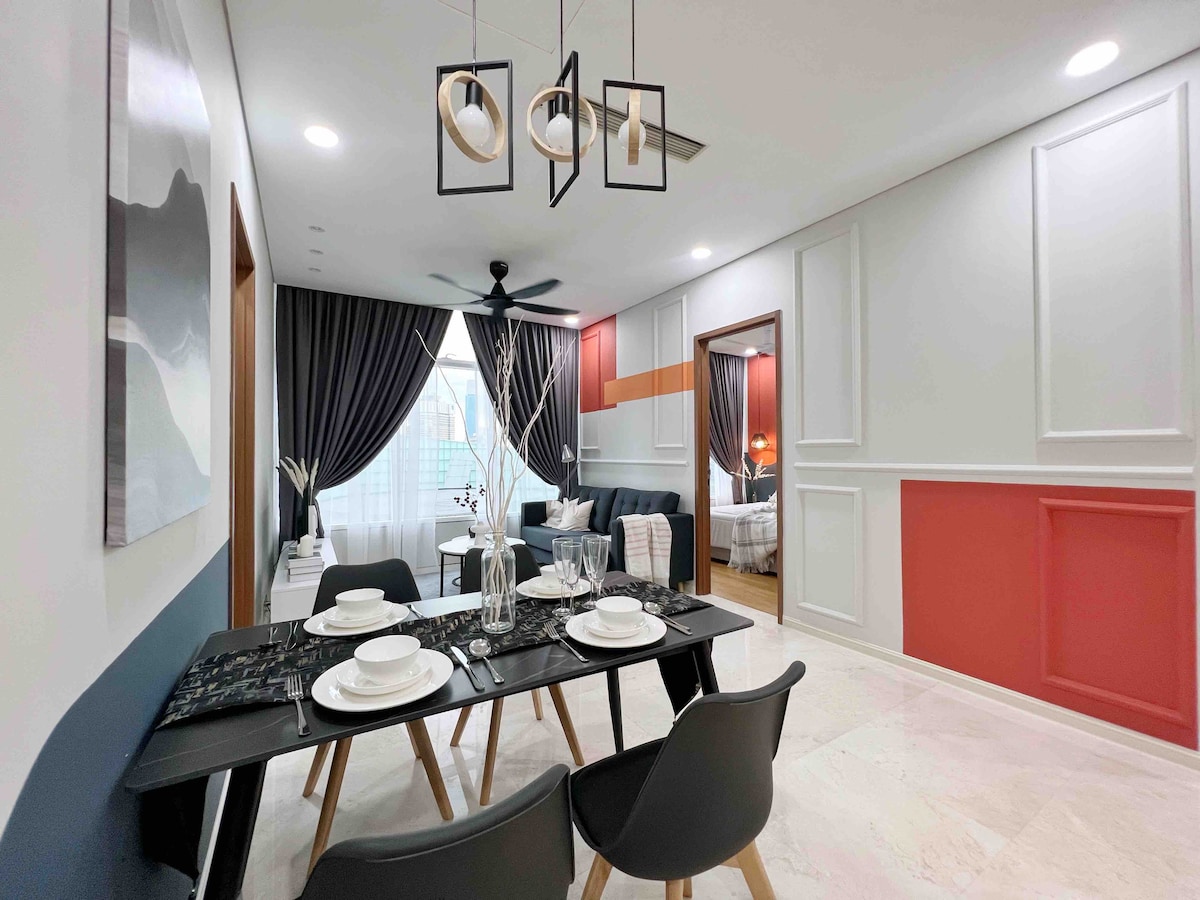 Experience a blend of modern and vintage charm in this suite. Escape to this private space featuring eclectic accents, luxurious bedding, and kitchenette. Walk to Petronas Twin Tower, Kuala Lumpur top attraction in 10 minute Free parking, Wifi with in-house entertainment, and laundry. Perfect spot for business trip & family staycation. Sparkling clean room with mint condition.