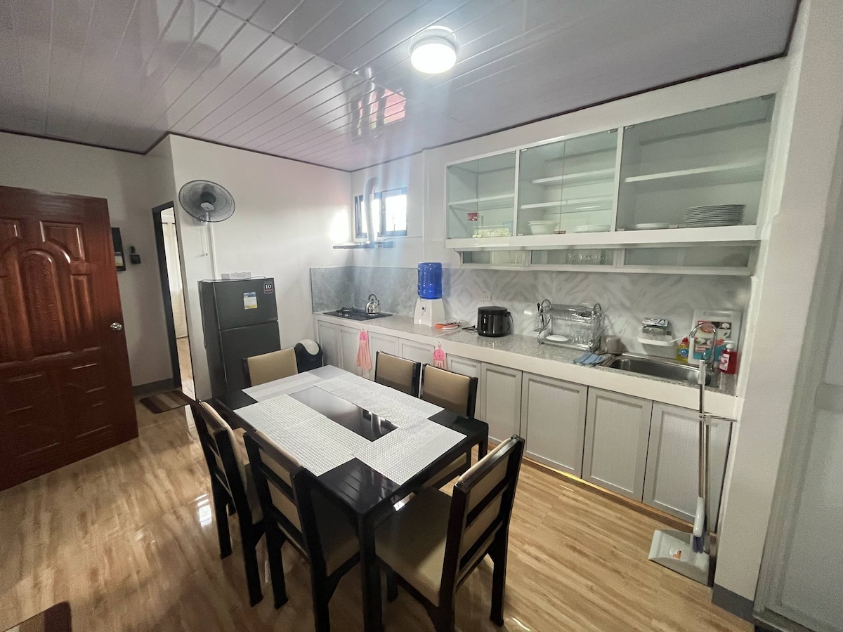 The accommodation consists 3 story house use stairs 13-14 steps to reach the landing area to 2nd floor @ 2nd floor consists of spacious 1 living room, dining room, 1 kitchen w/ facilities, 1 double bedroom fully aircondition @ Music room fully aircondition can be converted to room with sofa bed accommodation 3-4 pax *2 toilets( 1 inside and 1 outside)
