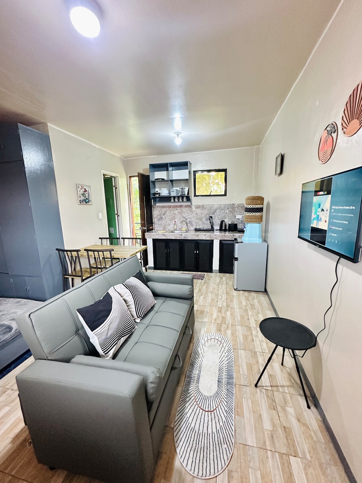 Relax in style at our 2BR apartment in General Luna, set on the ground floor for easy access. Featuring Starlink internet, AC in every room, and a 55" smart TV with Netflix / YT, it blends comfort with modern convenience. Cook in the fully equipped kitchenette or unwind in the cozy lounge with convertible sofa. Just minutes from Cloud 9 surf and walk distance from Sunset bridge. This retreat is perfect for families or groups seeking an island escape with a touch of home.
