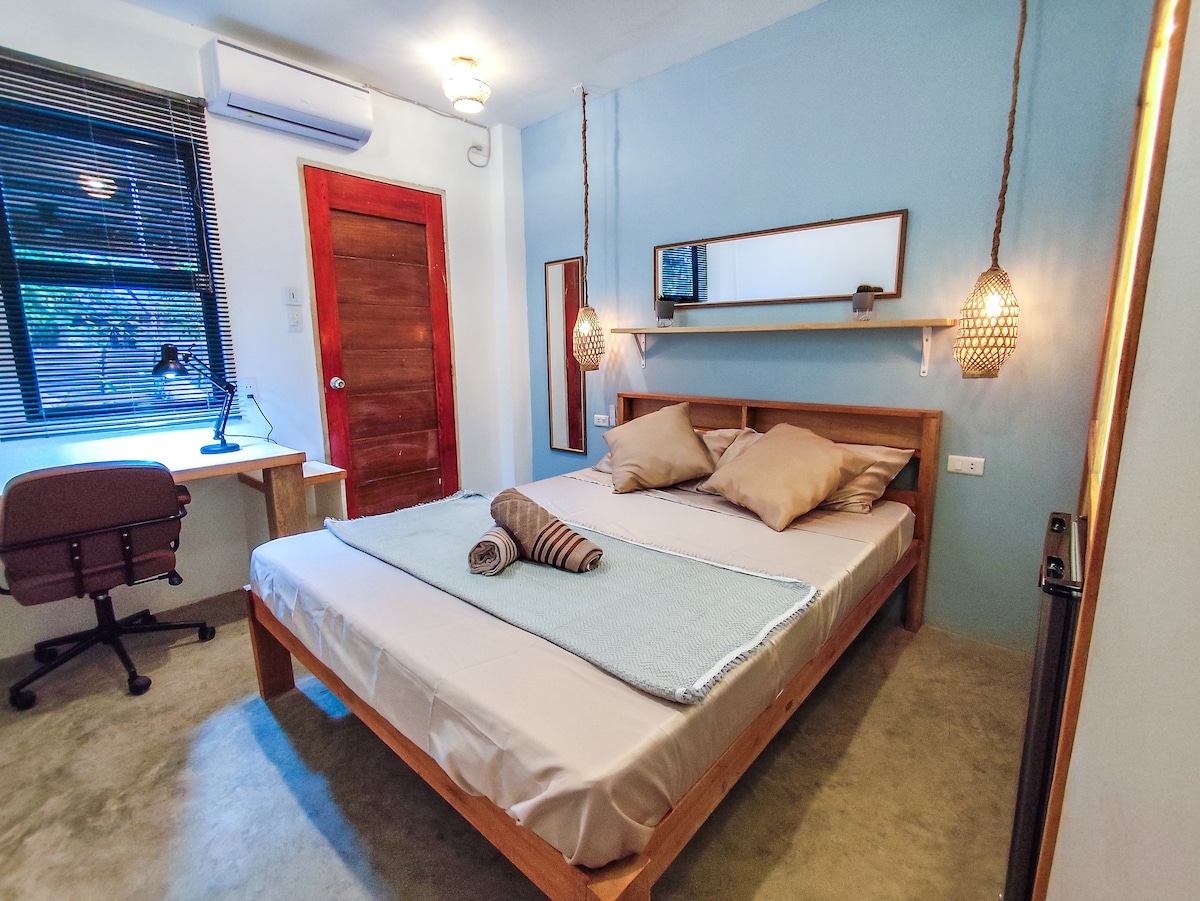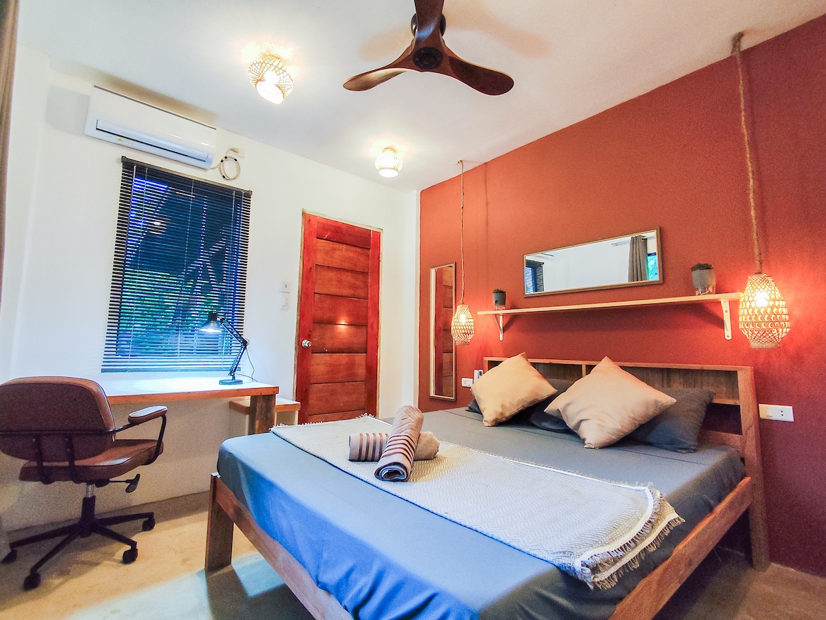 Stay at Eco Wooden House, your own rustic wooden home surrounded by nature — just 5 minutes by bike from General Luna. You’ll have the entire place: two bedrooms (one double, one single), an eco-style bathroom, A/C in both bedrooms, fast WiFi, fresh linens and towels, and a fully equipped kitchen with gas stove and water dispenser. Enjoy the bamboo porch with a hammock and a peaceful natural setting. Perfect for travelers or remote workers looking for an affordable and comfortable stay.