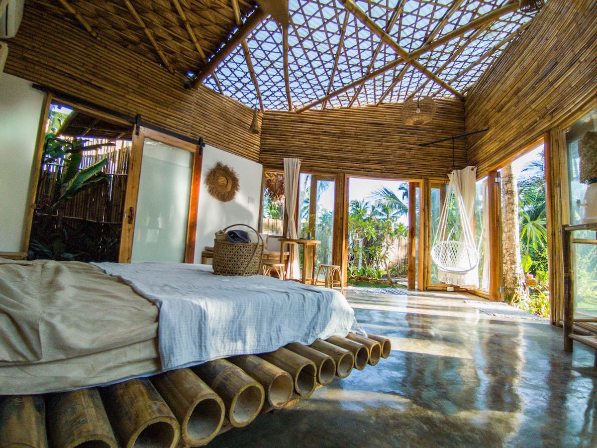 Welcome to our little sanctuary of tranquility. Staying in the Bamboo House, you will be not too near and not too far from everything. Located at the seaside of Santa Fe, in the middle of a lush & quiet tropical garden; The Bamboo House is 50 steps from an empty white sand beach offering breathtaking sunsets, 8 minutes from Cloud 9 and away from the crowds. This gateway is the perfect place to let the energies flow, dedicate yourself to contemplation and revel in the moment.