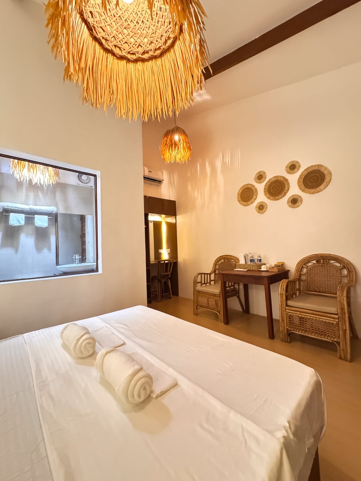 Step into Your Own Private Sanctuary—Inside the Heart of Padel & Palms padel club. Welcome to The Padel Hideaway. A cozy, stylish private room that feels less like a rental and more like your dream staycation retreat. In the heart of General Luna, Siargao. This is a spacious private room with your own bathroom, an outdoor private chilling area. Includes amenities like work space, outdoor bamboo shower, fridge, Starlink wifi, aircon, discounted padel and soon-to-open Bamboo Café and ice bath.