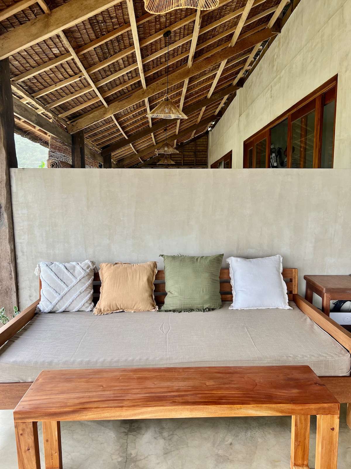 Our ocean-view bungalow is nestled in the quiet village of Cabitoonan, only 3 minutes away from the famous Cloud 9 surf break. Located right on the water with views of Siargao's most famous surf spots, we're close to the action and far from the noise—your own little slice of paradise. Community is important to us, and guests are just family we haven't met yet! Be prepared to hand out high fives and "hellos!" to the local grums who will rush to greet you. Come enjoy the real Siargao with us!