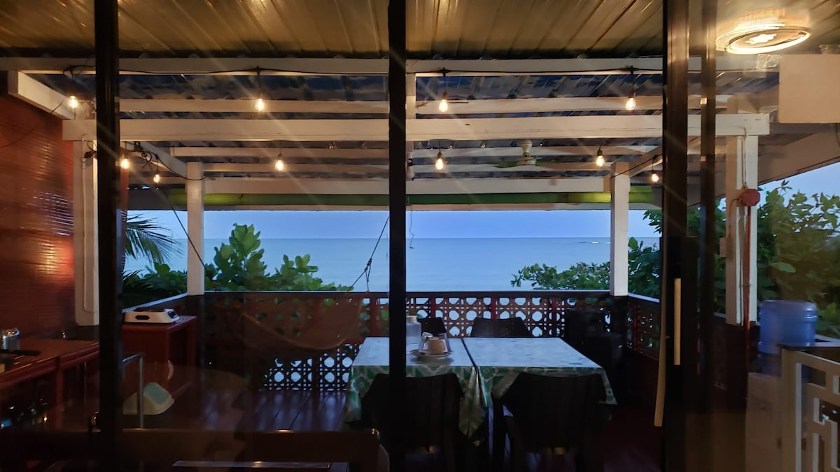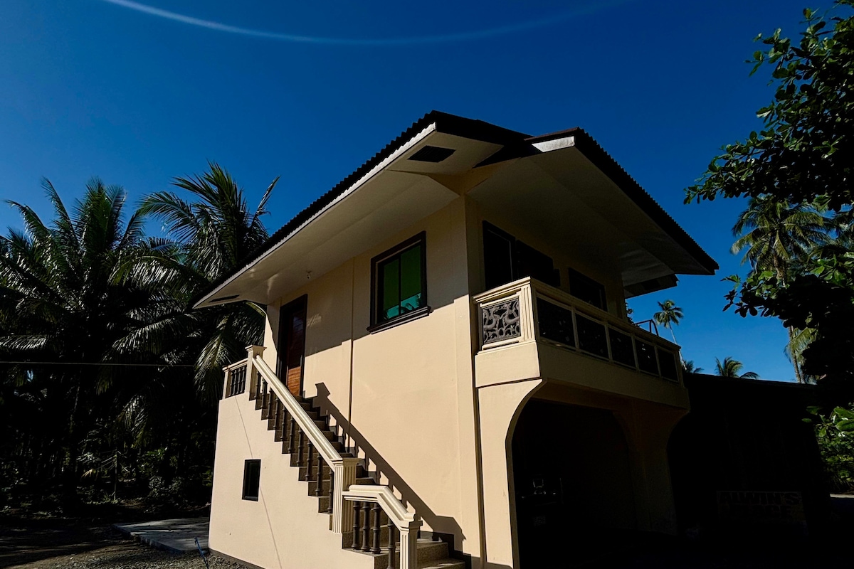 Fully furnished Oceanfront 2nd floor Modern Treehouse with large covered Amakan deck. Private entrance, 60 sq meters of space. Sandy beach is just outside private gate. Wake up to the sound of waves almost below you… 15 Mins by Car to Britania Islets (Island hopping) 23 Mins by Car to Cagwait White Sand Beach 90 Mins by Car to Enchanted River Walk to a costal reef that appears at low tide or boat ride to Bonbon Owners family lives in first floor house, ready to be a resource for guests.