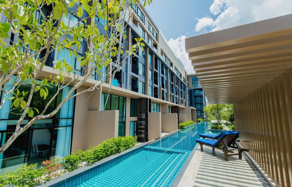 Wake up to lush mountain views through floor-to-ceiling glass in this bright Surin Beach studio, just 650 m from the sand. After a day out, float in the rooftop pool with sea panorama, hit the gym, or focus in the co-working hub. Your private nest offers two whisper-quiet air-conditioners, a king bed, blackout drapes, large Smart TV, 500 Mbps Wi-Fi, full kitchenette and washer. Smart-lock self check-in; water & electricity included.
