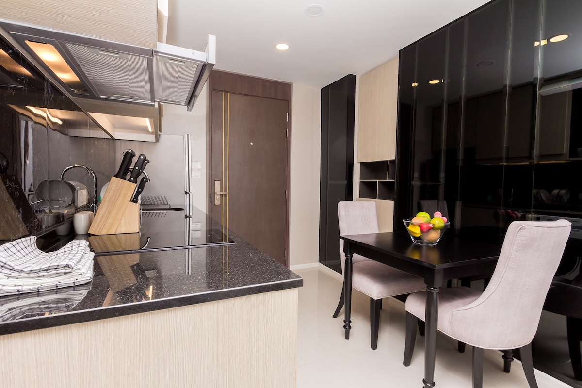 Cozy 1-bedroom condo in the largest complex near Surin Beach, just a short walk away. Features a full kitchen, washer, king bed, sofa bed, shower, 2 A/C units, WiFi, balcony with seating. Enjoy 6 pools (including rooftop), 2 gyms, saunas, kids club, library, on-site restaurant, Starbucks, and free parking. Ideal for comfort and convenience near the beach.