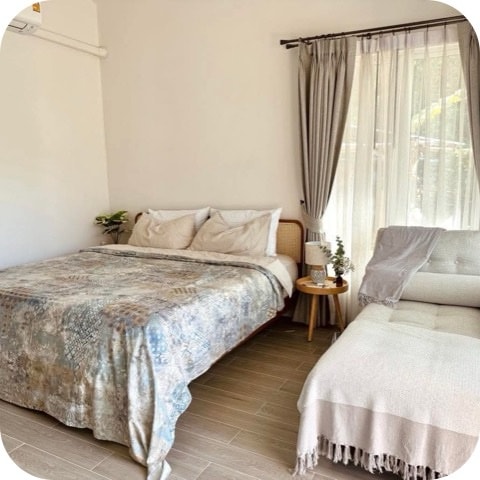 ทุกอย่างเป็นเรื่องง่ายเมื่อได้ที่พักบรรยากาศสงบ ตั้งอยู่ในใจกลางเมือง เป็นบ้านใหม่บ้านเดี่ยวหมู่บ้านมีบรรยากาศเหมือนทางตะวันตกบ้านจะมีพื้นที่กว้างขวางสามห้องนอนซึ่งห้องนอนใหญ่ Master bedroom จะมีระเบียงขนาดใหญ่สำหรับนั่งเล่นดูดาวและรับลมตอนกลางคืนมีห้องน้ำในตัวและอีกห้องก็จะมีระเบียงขนาดเล็กสามารถชมบรรยากาศด้านนอกยามเย็นได้อีกด้วยและมีห้องนอนเล็กอีกห้องบ้านจะมีสิ่งอำนวยความสะดวกสบายอย่างครบครัน ที่จอดรถหน้าบ้านสามารถจอดรถยนต์ได้ถึงสองคัน รวมไปถึงสระไหว้น้ำ ฟิตเนส สามารถใช้บริการได้ฟรี