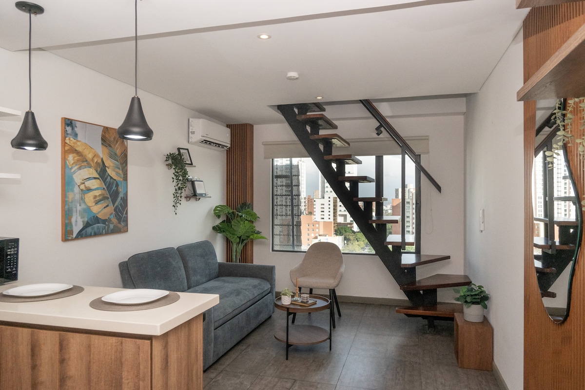 Sumérgete en un dúplex estilo loft moderno y acogedor, donde cada detalle ha sido cuidadosamente diseñado para tu comodidad. Con ubicación estratégica, a minutos de clínicas, el centro comercial Viva y excelentes restaurantes, es perfecto para viajeros, familias o tratamientos médicos. El edificio ofrece piscina, turco, sauna, cafetería y acceso a gimnasio Smart Fit (pago adicional), uniendo descanso, trabajo y bienestar.