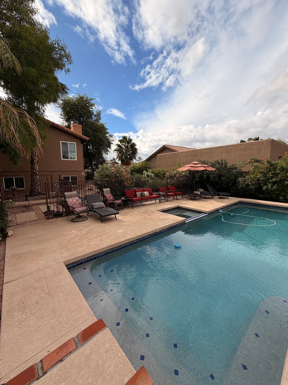 Comfortably furnished by a local designer, guests will enjoy the open/spacious layout. Pets stay for free! Area for work at home/students! Indulge in the private backyard oasis, w/complimentary heated pool (Oct-Apr to 85 degrees), BBQ & Spa! Prepare family meals in the well equipped kitchen & dine indoors or on the patio.Minutes to Desert Ridge and fabulous Kierland Commons/N. Scottsdale. Shopping & parks nearby. Sit back, relax, and enjoy – it doesn’t get any better! We support equality!
