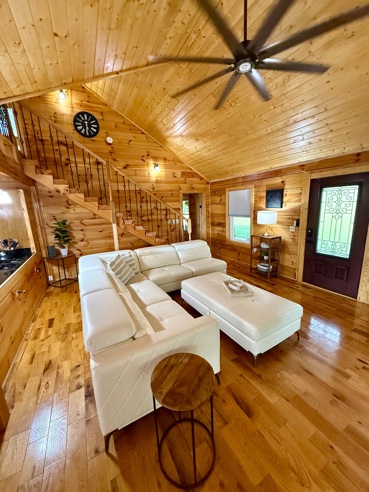 Enjoy a secluded stay in our one of a kind, luxurious log cabin treehouse. The treehouse offers 2 bedrooms, the master bedroom on the main floor with a rock shower and the loft bedroom with a half bath. The treehouse has a full wrap around porch with jacuzzi tub overlooking a spring branch and fire pit. Enjoy the outdoor shower with a 16” rainfall shower head under the treehouse next to the spring branch. Our gravel road welcomes you to a cozy home in the trees.