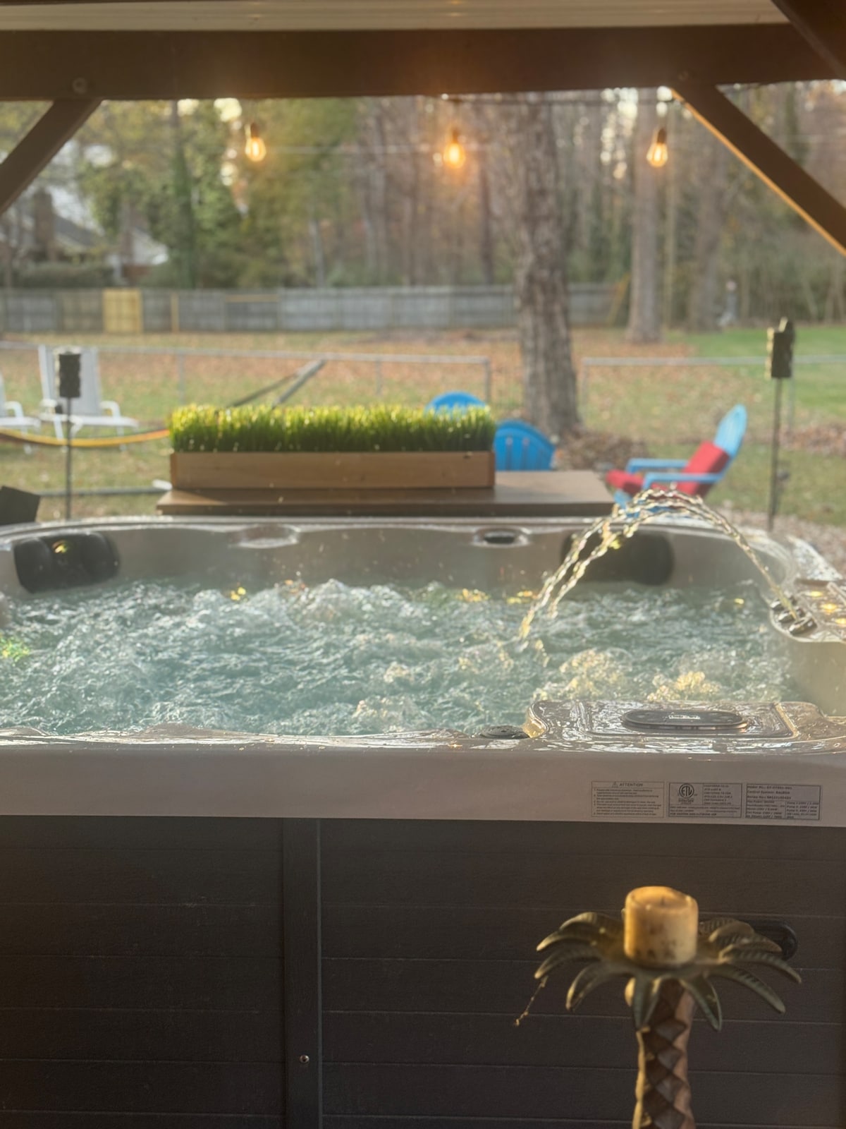 Experience a unique blend of comfort and luxury in our brand new custom-designed couples retreat in Mount Airy, NC, just a short walk from Main Street. The Bliss Escape is sure to please even the most discerning of guests. This 825 sq ft single family home offers standout features like a spacious dual rainfall custom shower and a dreamy soaking tub, Enjoy elegant décor, modern amenities, and your own private outdoor oasis including hot tub, chair swings and fire pit for a relaxing getaway.