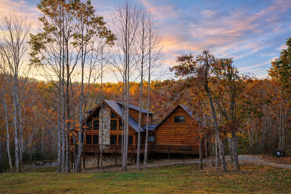 Castaway Lodge, Ennice NC (10-20 mins to hiking, fishing & the Parkway) • Six acres of privacy w/ stocked, Catch n' Release fishing pond (Crappie, Blue Gill, Bass, etc) • FIRE PIT, HOT TUB, WiFi & 5 TVs • Game Room: Pool Table, Stand-up Arcade, darts • Over 3000 sq ft of A/C living space + outdoor dining, gas grill • Main floor master, jetted tub, gas fireplace, W/D • 20 mins to New River, Stone Mountain State Park & Sparta! Destination Rental & our #1 Rental! Dog Friendly (see below Rules)