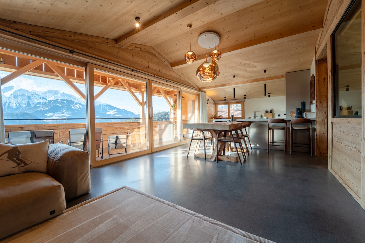 Modernes, hochwertiges und freistehendes Chalet am sonnigen Südhang oberhalb von Schluein – nahe Laax & Flims. Große Sonnenterrasse und sensationeller Weitblick über das Rheintal bis zum Golfplatz Sagogn. Ideal für Familien bis 6 Personen (3 Schlafzimmer, 2 Bäder + Gäste‑WC): Im Sommer & Herbst die perfekte Basis zum Wandern und Biken in den Bergen oder in der Rheinschlucht sowie zum Golfen. Im Winter ideal für Ski & Snowboard in Laax. Ein gut erzogener Hund ist ebenfalls willkommen.