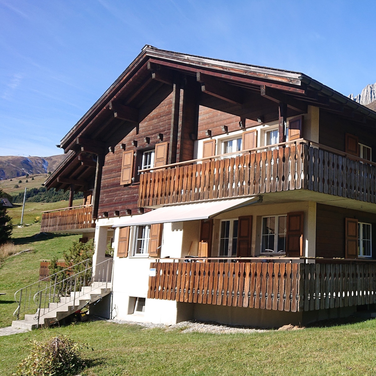 Geniesse die Bündner Bergwelt in unserer schönen Ferienwohnung mitten im Dorfkern von Disentis. Die grosse, helle 3,5 Zimmer Wohnung (85m2) befindet sich im obersten Stockwerk eines Mehrfamilienhauses (Baujahr 2016) und ist ab Sommer 2021 als Ferienwohnung buchbar. Die liebevoll, modern, komfortabel und komplett eingerichtete Wohnung bietet freie Aussicht auf das Bergpanorama. In unmittelbarer Nähe befinden sich Geschäfte, Restaurants, Bahnhof und saisonale Busstation (bspw. zu den Bergbahnen).