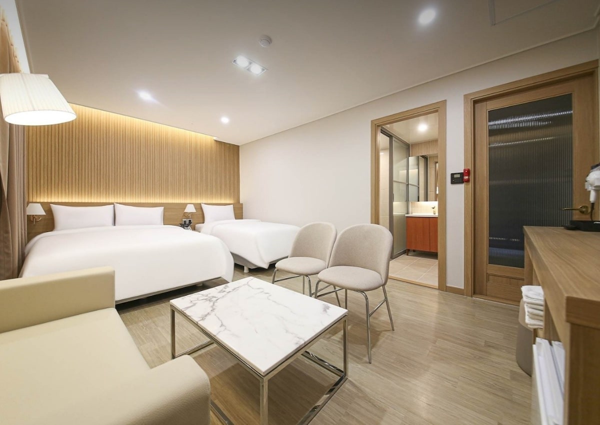 🏨 숙소 소개 원주 중심의 감성 호텔, 아늑하고 세련된 객실에서 편안한 휴식을 즐기세요! 고속버스터미널·편의시설 도보권에 있어 교통·편의성 모두 최고입니다. 🛏️ 객실 • 깔끔하고 감각적인 인테리어 • 편안한 침대 & 필수 어메니티 (TV, 무료 Wi‑Fi) • 일부 객실엔 욕조 또는 루프탑 공간 옵션도 제공 • 전 객실 금연, 쾌적한 실내 환경 제공