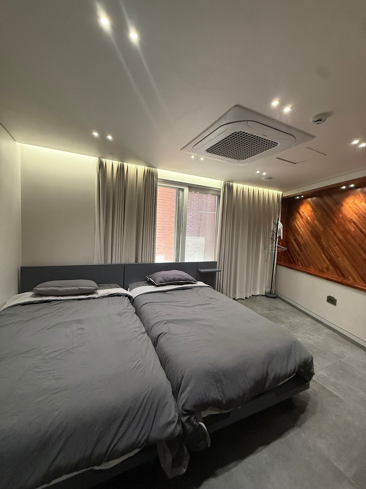 [UH FLAT] ๋ค๋ ๊ฐ ์ํ์๋ฐ์์ค์ ์ด์ํ๋ฉฐ ์์์จ ๋ ธํ์ฐ๋ก ๋์ฌ์ ๊ณต๊ฐ์์ ์๋ฒฝํ ํด์์ ์ ๋ฌผํฉ๋๋ค. [UH FLAT ๋๊ตฌ์ ] #2021๋ ์ ์ถ๋ ์พ์ ํ๊ณ ๊นจ๋ํ ๋๊ตฌ 'UH FLAT ๋๊ตฌ' ์ ๋๋ค. #์ต๊ณ ๊ธ ํธํ ์ ์นจ๊ตฌ์ ๋งคํธ๋ฆฌ์ค๋ก ํธ์ํ๊ณ ์๋ฝํ ์ ์๋ฆฌ๋ฅผ ์ ๊ณตํฉ๋๋ค. #๋ฉ๋ฆฌ์ดํธ ์ด์์ฌ์๋ ๊ด๊ณ๊ฐ ์์ ์๋ UH FLAT ์ด์ ์ด๊ธฐ ๋๋ฌธ์ ๋ฉ๋ฆฌ์ดํธ ๋ฉค๋ฒ์ฝ ์ ์ฉ ๋ถ๊ฐ ํ๋ฉฐ, ๋ถ๋์์ค์ ์ ๋ฃ๋ก ์ด์ฉ ํ์ ์ผ ํฉ๋๋ค. #์ฒดํฌ์ธ/์ฒดํฌ์์ - ์ฒดํฌ์ธ 16:00 / ์ฒดํฌ์์ 11:00 - ์ฒดํฌ์ธ ์ , ์ฒดํฌ์์ ํ ์ง๋ณด๊ด ๊ฐ๋ฅํฉ๋๋ค.(09:00 ~ 03:00) - ์ฃผ์ฐจ๋ถ๊ฐ ์์ ์ ๋๋ค. - ๋๋๊ตฌ์ญ 2๋ฒ ์ถ๊ตฌ์์ ๋๋ณด๋ก 3๋ถ ์ด๋ด ์์นํฉ๋๋ค. - ๊ฐ์ค์ฌ์ง์ ๊ฒฝ์ฐ ๊ฐ์ค๋ณ ๋ํ์ฌ์ง์ผ๋ก ์ค์ ๋ฐฐ์ ๋ฐ๋ ๊ฐ์ค๊ณผ ์์ดํ ์ ์์ต๋๋ค.