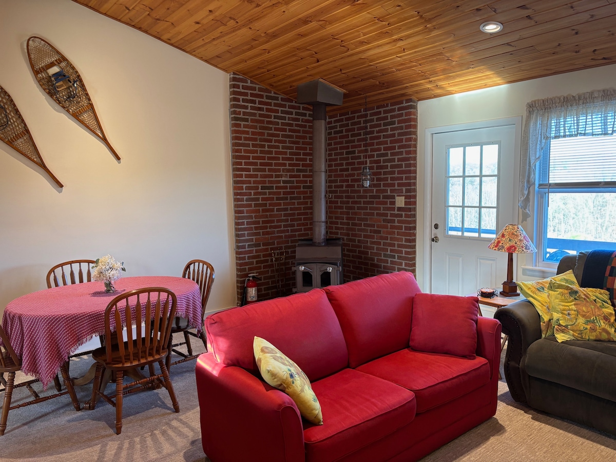 Here you can relax with the whole family or it’s a perfect getaway for 2. From Spring to late fall we’ll have mini goats and free range rabbits & chickens. The creek is perfect for tubing on a hot summer day.Have a picnic in the trees next to the water.Just a mile away is an ice cream/petting zoo and greenhouse with amish gifts. Next door is our operating hobby farm with donkeys, sheep alpacas, goats and chickens.If you’re looking for a nice relaxing retreat, we have what you’re looking for.