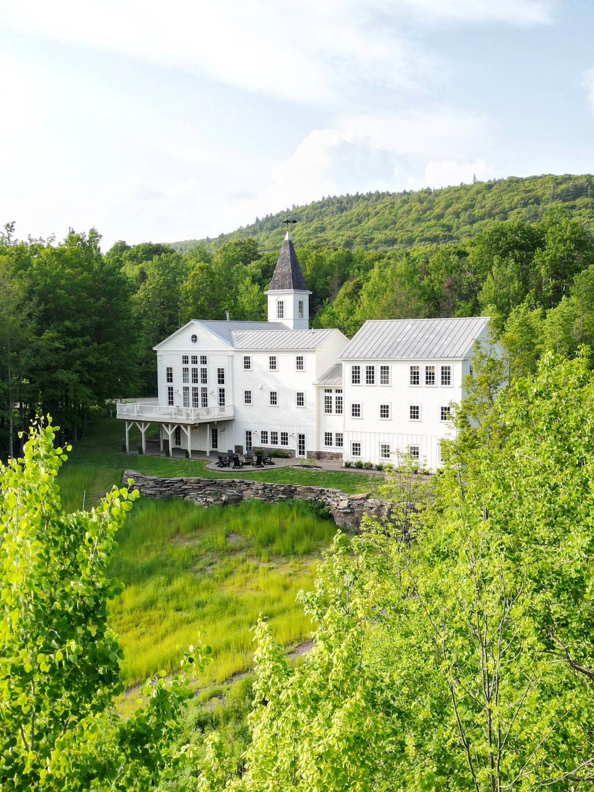 Click: "Show more" to read full description. Stay in a newly restored 19th-century Greek Revival church in the high peaks of the Northern Catskills. Just 20 min to skiing at Windham Mountain! Potter Mountain House offers panoramic views from nearly every room with soaring ceilings, original wood beams, gas fireplace, chefs kitchen, office, a walk-in wine room and library within the steeple and four serene bedrooms and spa-like bathrooms.