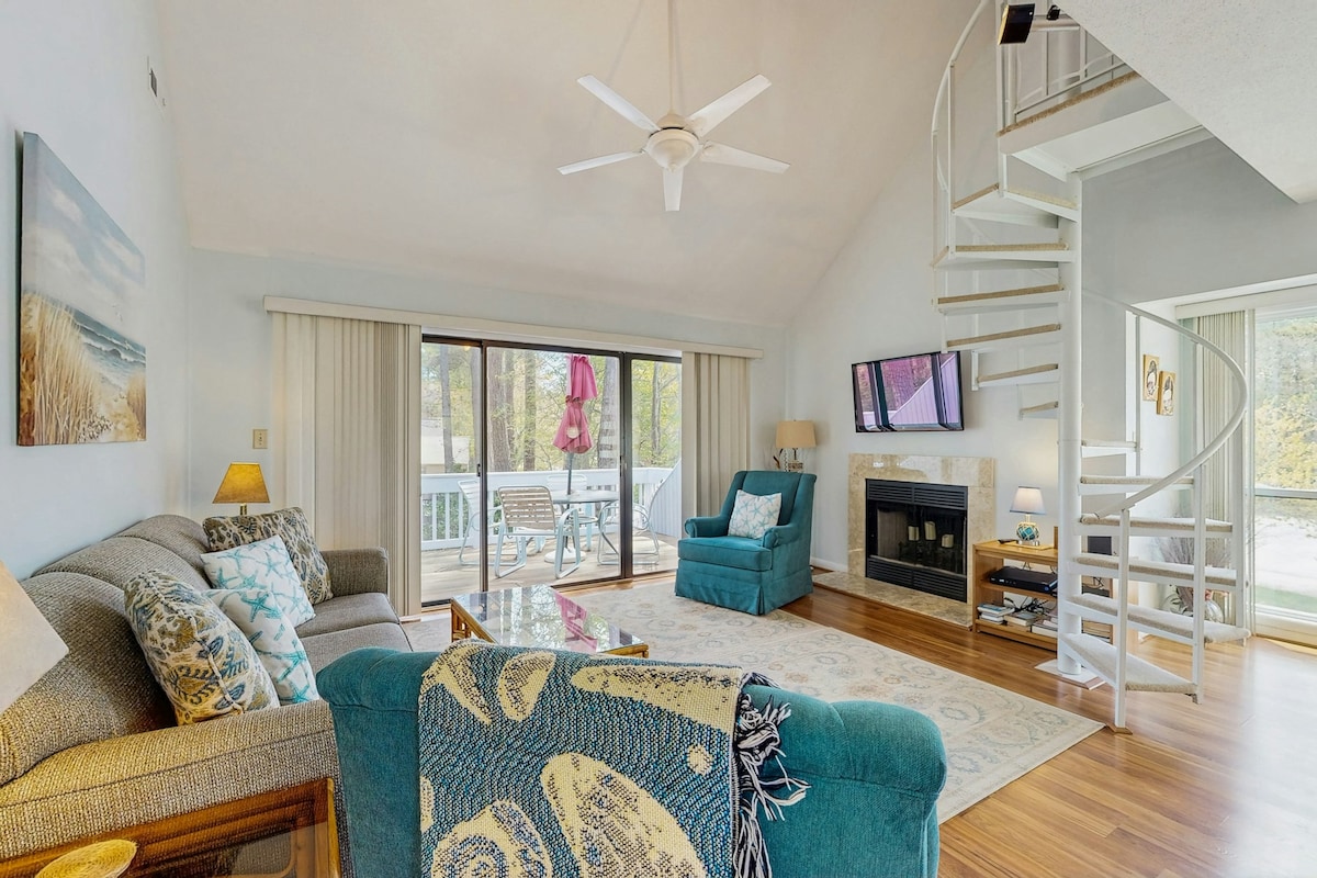 Recently renovated, 3BR*/2BA upper condo with private entrance in the heart of Sea Colony! Designed as a place to get away & enjoy the beach, pool, tennis, exercise or just relax! Open floor plan with 2 main level bedrooms with a peaceful wooded view. * Upstairs loft sleeping area is accessible via spiral staircase only. Enjoy- -Direct communication with the owner -Self Check-in/out -High Speed WiFi -Smart TVs -Steps to Pools, Tennis Center and Fitness Center. Walk, shuttle or bike to beach.