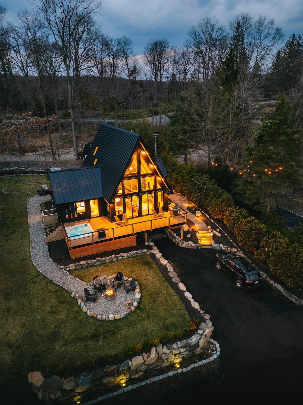 湖畔小木屋Aframe +火坑+游戏室+热水浴缸