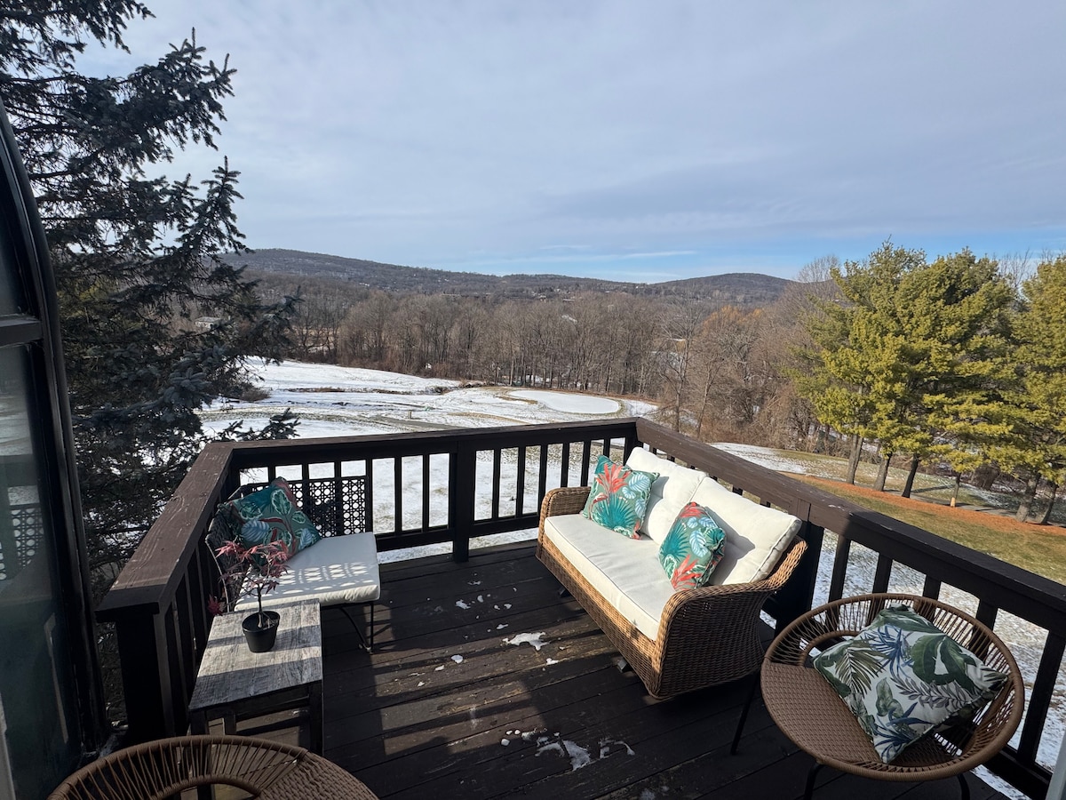 Skiiis N’ Tees is a 3-bedroom, 2-bath, four-season getaway where mountain views and fresh air do wonders for the soul. Just a short drive from NYC, it’s perfect for couples, families, girls weekends, or guys’ golf trips. This stylish end-unit condo sits beside a 9-hole golf course and is just 5 minutes from the slopes. Hike, sip at vineyards, or go apple picking—there’s something for everyone. One dog stays free. Pack & Play available. Come for the views and stay for the vibes!