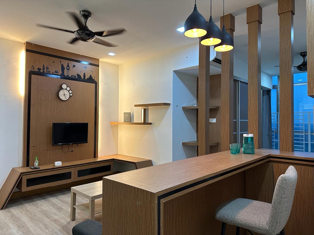 (1+1 BR & 1 bathroom) Contemporary modern and cozy condo in the heart of JB city centre. Suitable for 4pax family, friends and business group. **5mins to CIQ, City Square, KSL, Pelangi, and Larkin **8mins to Mid Valley Southkey, Larkin Sentral and Sentosa **15 mins drive to Paradigm mall, Sutera, Skudai and Mount Austin ✔ 4K SmartTV ✔ High Speed Wi-Fi, working tables with extension plug ✔ Washer ✔ Airconds in every rooms. ✔ Atari console, Mahjong, and Board games. ✔ FREE parking for 1 car