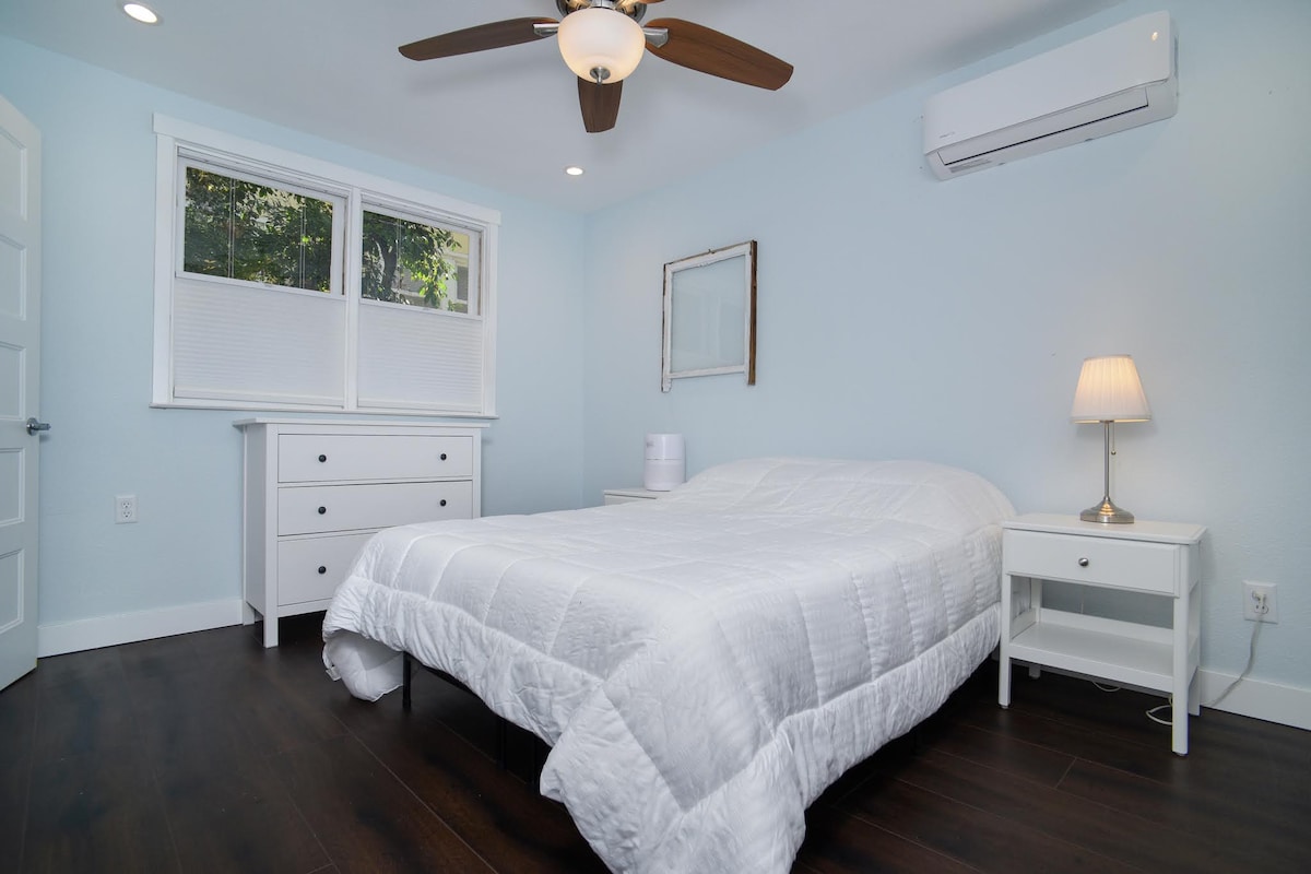 Hendricks House is an aesthetic masterpiece in the heart of East Sacramento. Tree-lined streets and beautiful architecture make for delightful walks to cafes and coffee shops. Our home was built in 2020 and offers the best of old world design with all the modern amenities. Close to three regional hospitals, CSUS and the state Capitol. Two bedrooms, a fully stocked kitchen, washer/dryer, gas fireplace and on-site parking make it perfect for a family, a romantic getaway or business trip. Max=4