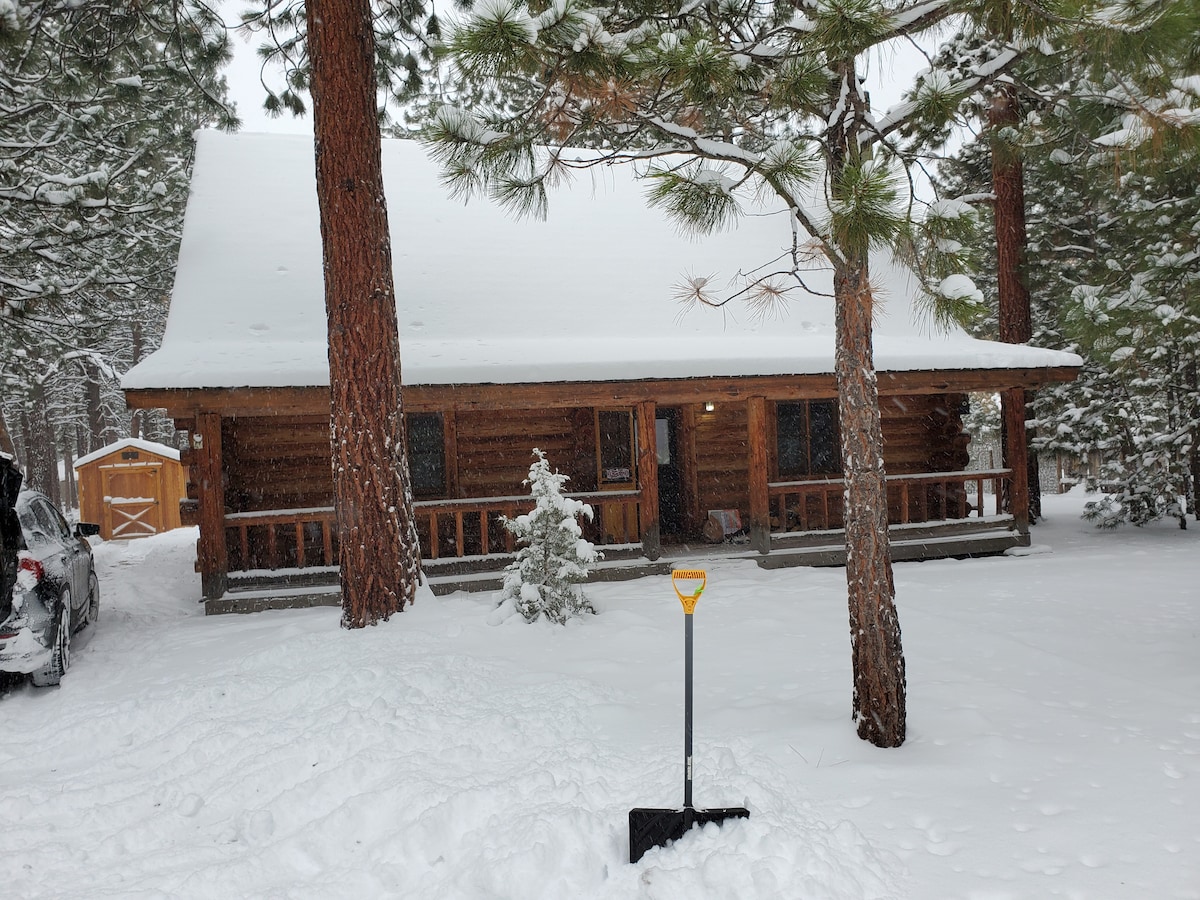 Our tiny log cabin is a cozy getaway, close to hiking, mountain biking, and cross country skiing but only 10 miles from the amenities of Bend Oregon. It is a rustic place, with modern touches, like a gas range, refrigerator, and a gas fireplace. The bathroom is detached from the cabin - steps from the door. It is fully equipped with plumbing and a shower. Our place is perfect for people who love the outdoors with the comforts of home. No children under the age of 12 -- And alas, No Pets.