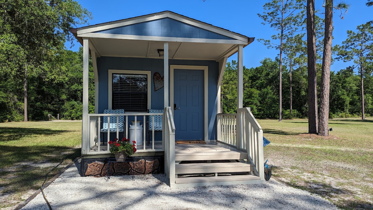 **Tiny Cabin** – Welcome to your cozy retreat, just 2 minutes from the beautiful Ichetucknee and Santa Fe Rivers! If you're in the mood for adventure, Ichetucknee State Park is just a 5-minute drive away, and Ginnie Springs and Poe Springs are only a 15-minute drive away. This cabin is located in an ideal location for scuba divers seeking comfortable accommodations while pursuing their certifications. This charming cabin is also great for solo travelers seeking a peaceful getaway.
