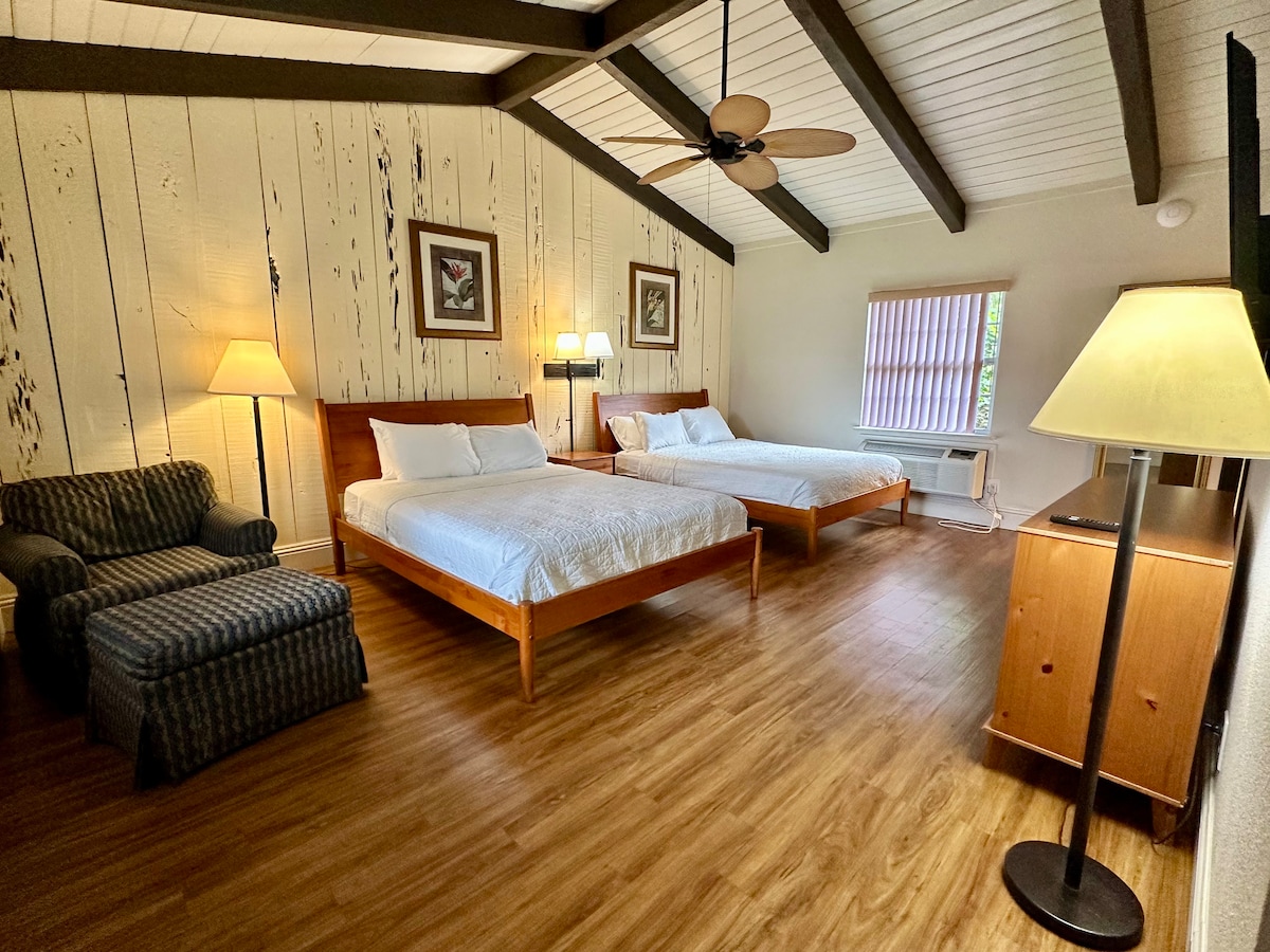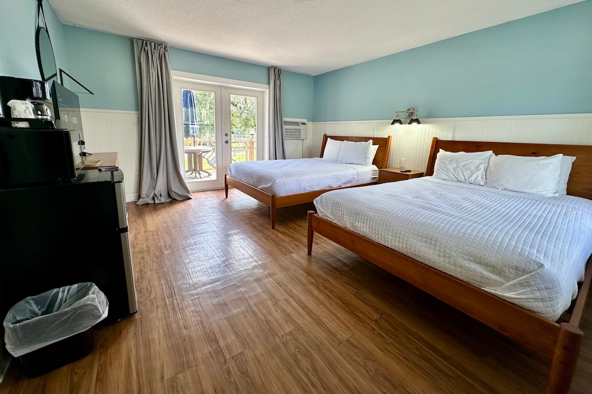 Kick back in this large balcony room at Suwannee Gables Motel-your hidden gem on Florida’s Nature Coast! Enjoy 300+ ft of riverfront with many sitting areas, a floating dock, rentals for kayaks, paddleboards & pontoons, plus a nearby boat launch! Just down the road from Fanning Springs State Park & close to world-class diving, cycling & trails. Bring your gear, relax by the river, swim in the pool & discover why guests never want to leave! Need more space? More rooms available for larger groups!