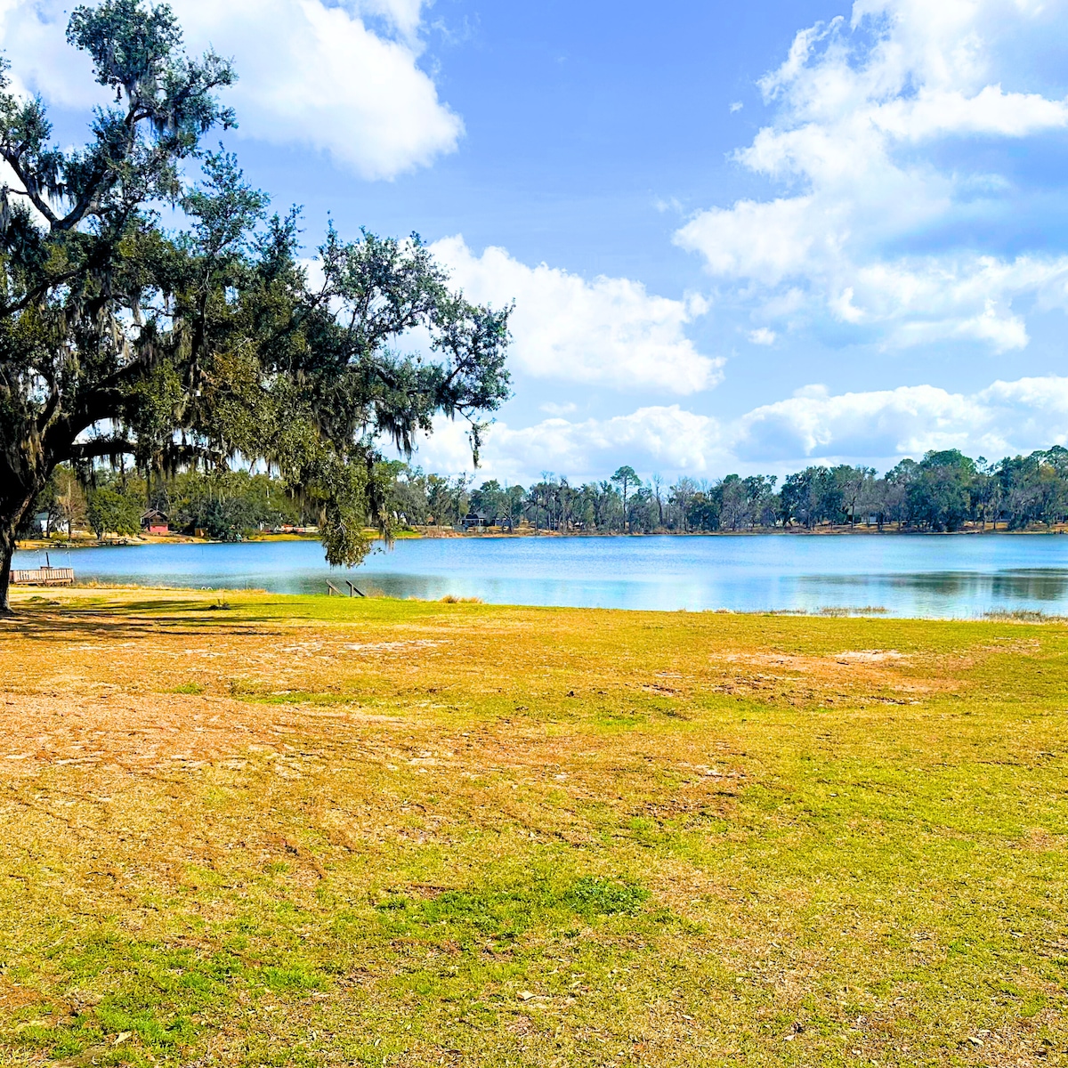 ☀Stunning sunsets on Lake Rousseau ☀Enjoy the glistening lake, natures sounds, and stunning views from your screened-in porch, dock or fire-pit ☀Activities: OK! Perhaps some corn hole or football on the manicured lawn if you are not too mesmerized by the sun glistening off of the water, the birds landing on the lake, or the many 300 y.o. Live Oak trees with Spanish moss that provide shade and filtered sunlight ☀Grill and then end the day with Sunset, peaceful sounds and S'mores on your bonfire
