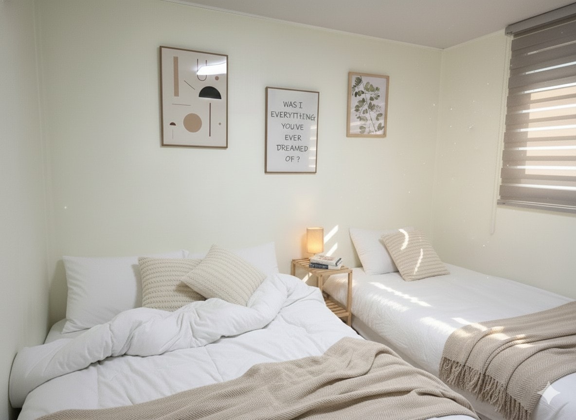 🏡 In Pangyo Daejang-dong New Town, quiet and airy the second floor of a newly built commercial house It's an sentimental studio-type two-room. - Outside parking is available on the first floor of the building itself, There are two rooms and two beds, so if you're a mid- to long-term guest for families with children and guests with dogs It's the best place :) - White tone's calm but sensual style Enjoy music, movies, and relaxing in your living quarters