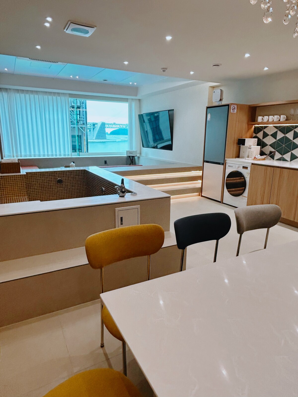 광안리해변 5초거리에 위치해있습니다. 18층 고층 파노라마 뷰로 광안대교를 한 눈에 담을 수 있습니다. 드론쇼 명당! 거실 창문을 통해 광안리해변 드론쇼를 방구석 1열에서 관람하실 수 있습니다. 낮엔 광안대교뷰가 눈앞에 펼쳐진 Home cafe, 밤엔 나만의 Bar 로 이용할 수 있어요. 넷플릭스, 왓챠, 디즈니플러스, 유튜브 프리미엄 시청 가능