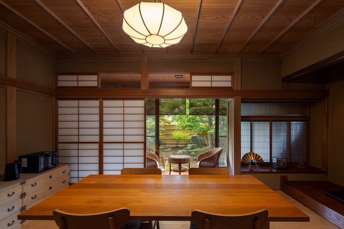 “Maison d’hotes KIRISI MIZU”, is a Irimoya style (traditional Japanese house, similar to Temple) that has been beautifully restored from traditional materials and passed down from my grate-grand parents generation. The entire house is done in a classic style as used to be, except for a newly built kitchen, toilet and bathroom that provide all the necessities of modern life.