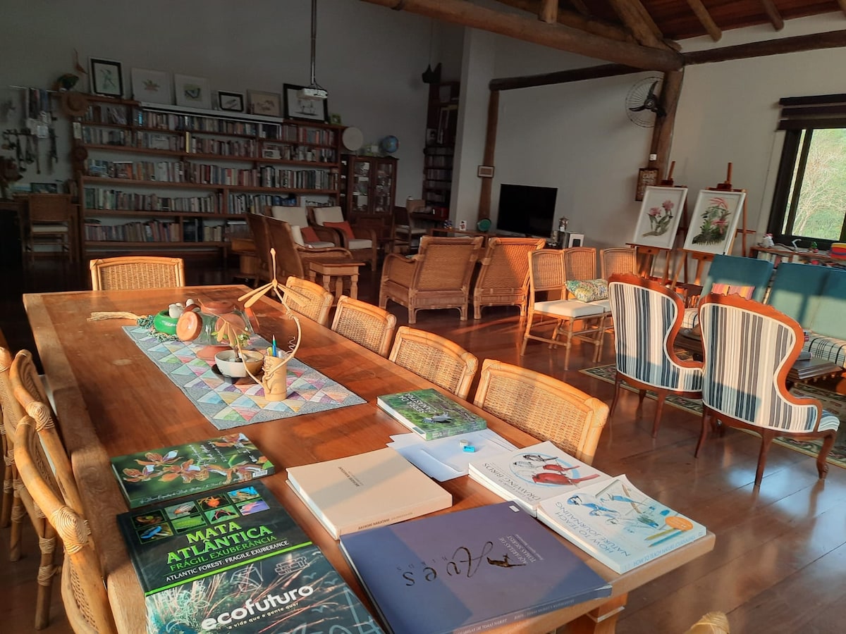 Suíte Ingá - ampla suíte, decorada com bom gosto e simplicidade, para acomodar até 3 pessoas com total conforto no modelo tradicional de hospedagem com banheiro privativo, mesa para trabalho e armário para guardar pertences. Estamos localizados em meio da natureza onde escutamos os pássaros e os sons da natureza logo cedo. O hóspede poderá desfrutar da companhia das aves nativas no café da manhã, pois receberão uma cesta de piquenique com vários itens e uma toalha de mesa.