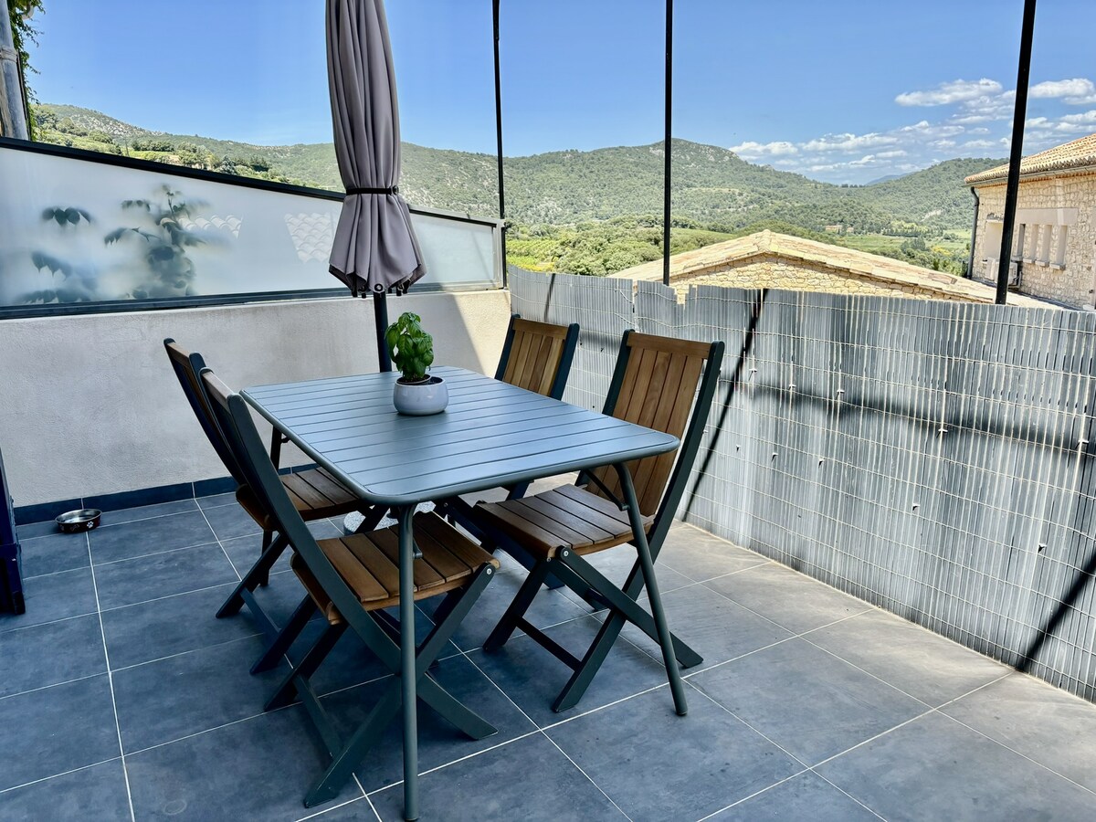 15th Century Village house perched on top of a hill with beautiful views. A south facing terrace looking to the Petit Luberon mountains. A complete renovation provides all modern day comforts and a relaxing atmosphere to enjoy after a day in Provence. The village of Menerbes (A Year in Provence - Peter Mayle) has mostly local villagers living here. Beautiful walks and cycling are popular pastimes. There are museums, an art gallery & a few shops run by locals. Unspoilt and completely unique.