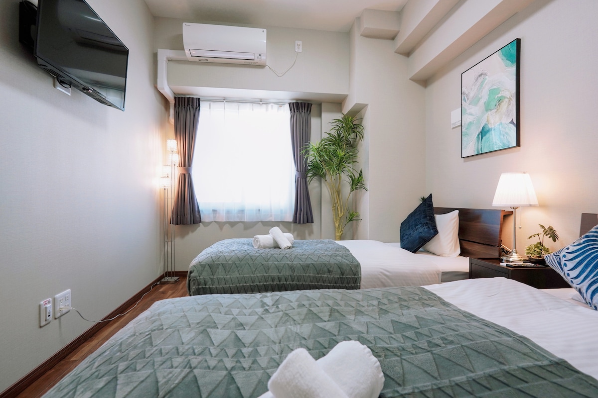 美国村步行1分钟|双人床 最多4人|心斋桥・难波道顿堀・橘子街|JR难波・地铁5分|中古&潮流&美食